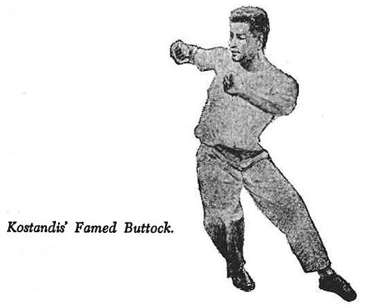 The student is first taught how to harden his buttocks. In standing and walking, he holds a coin between the parts which are pinched inward. This trick learned, the novice spends an hour a day banging his butt against a huge sandbag. […] The force generated is immense, and I saw many students actually thrown into the air by the swift undulation of an attacker’s buttock.7